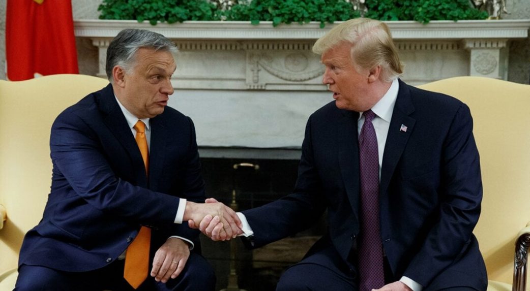 Egy lehetetlen képlet előtt az amerikai elnök, amit ma Orbán Viktor magyar miniszterelnök próbál értelmezni Donald Trump számára.