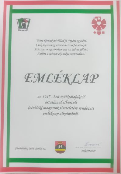 A Felvidékről kitelepítettek emléknapján Gömörfalván a Csemadok helyi alapszervezete rendeztte a megemlékezést az emlékparkban, ahol verssel, ünnepi beszéddel és koszorúzással tisztelegtek az érintettek emléke előtt. A rendezvény a kultúrházban folytatódott egy műsorral, filmvetítéssel és kötetlen beszélgetéssel. Tamás Ákos helyszíni összeállítása következik